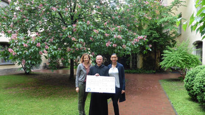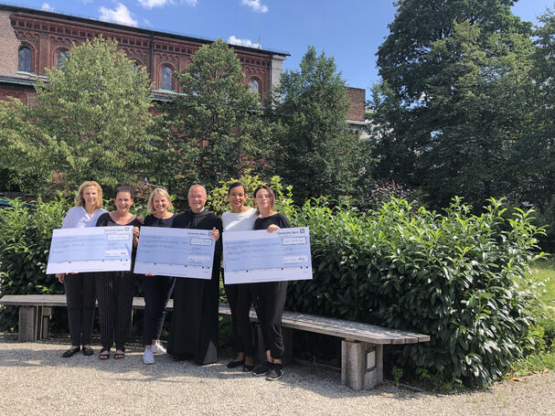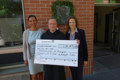 Feierliche Scheckübergabe der Spenden am 8.8.2019 im Klostergarten der Abtei St. Bonifaz: